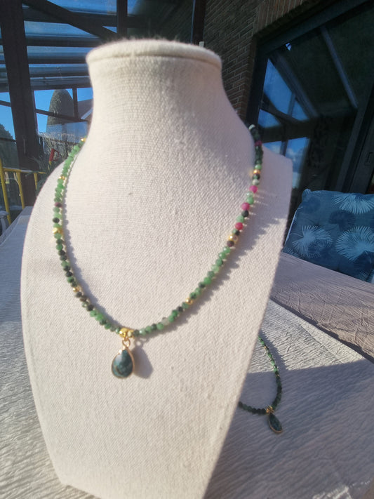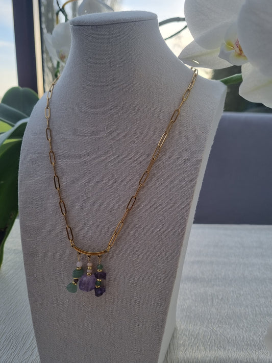 Collier Douceur de l’Aube - Éclat de Saphir et Pendentif en Quartz Rose