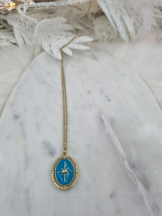 Chaînes avec Pendentif Bleu - Élégance en Acier Inoxydable