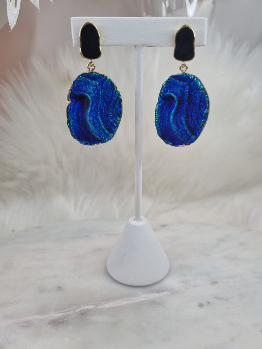 Boucles d’Oreilles Dora - Éclat Océanique avec Pierre Noire Rectangulaire