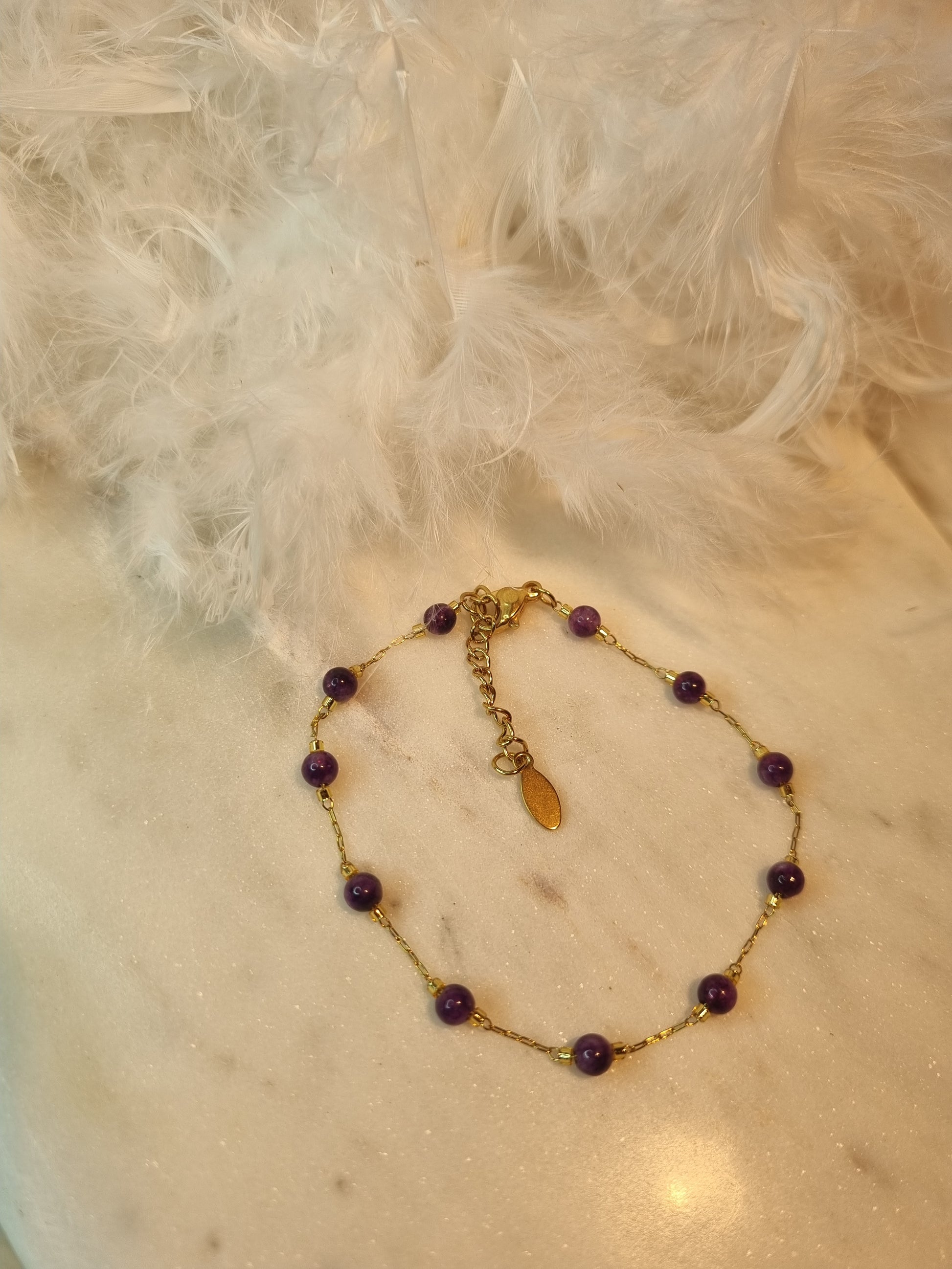 Votre bracelet délicat en acier inoxydable orné de perles semi-précieuses de l'améthystes. Élégance fine et sophistiquée signée Sophscraft.