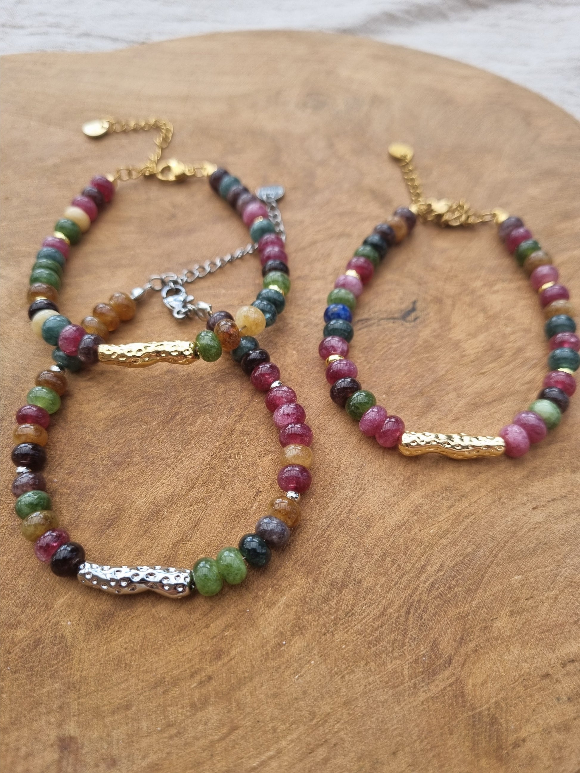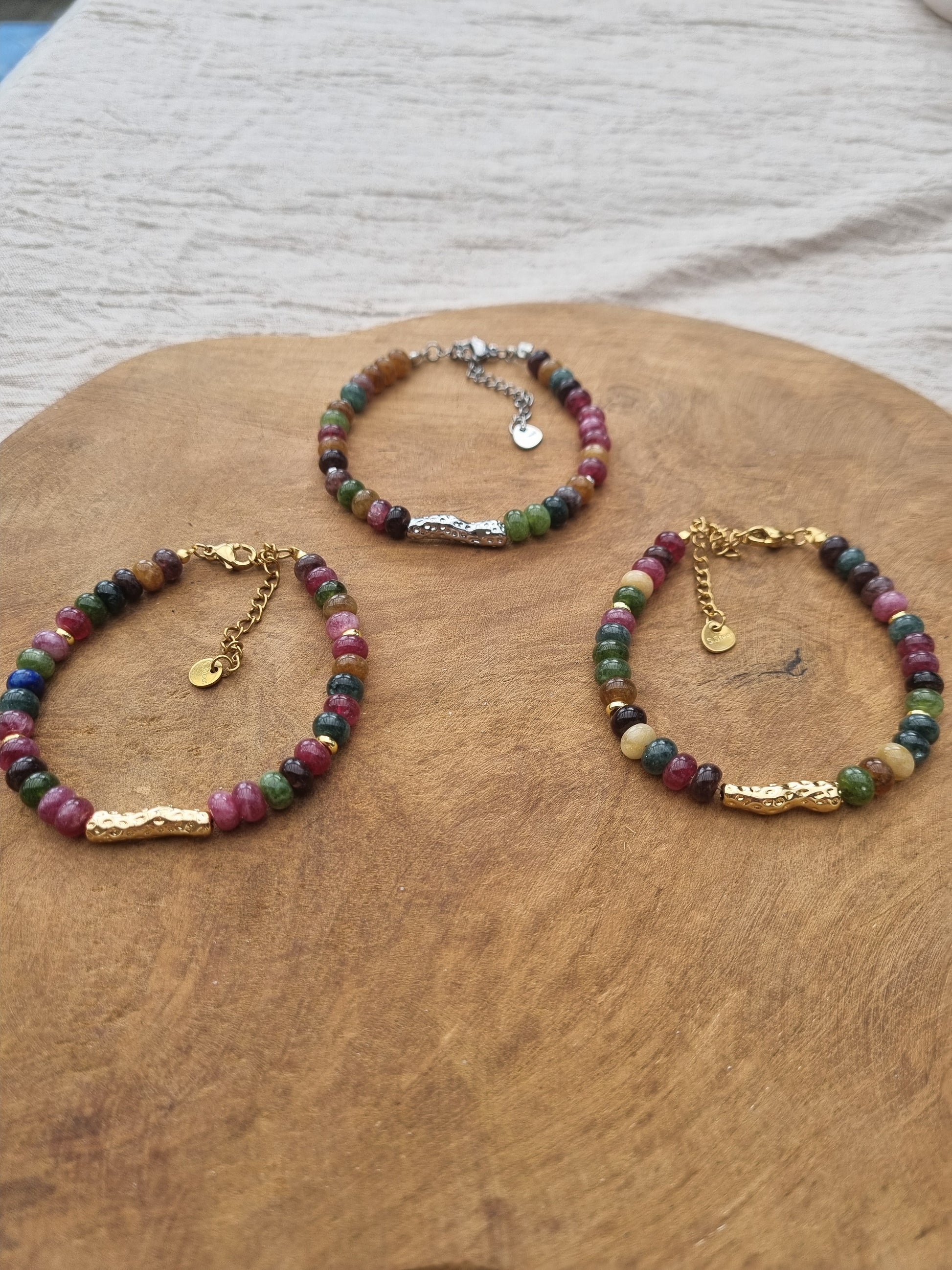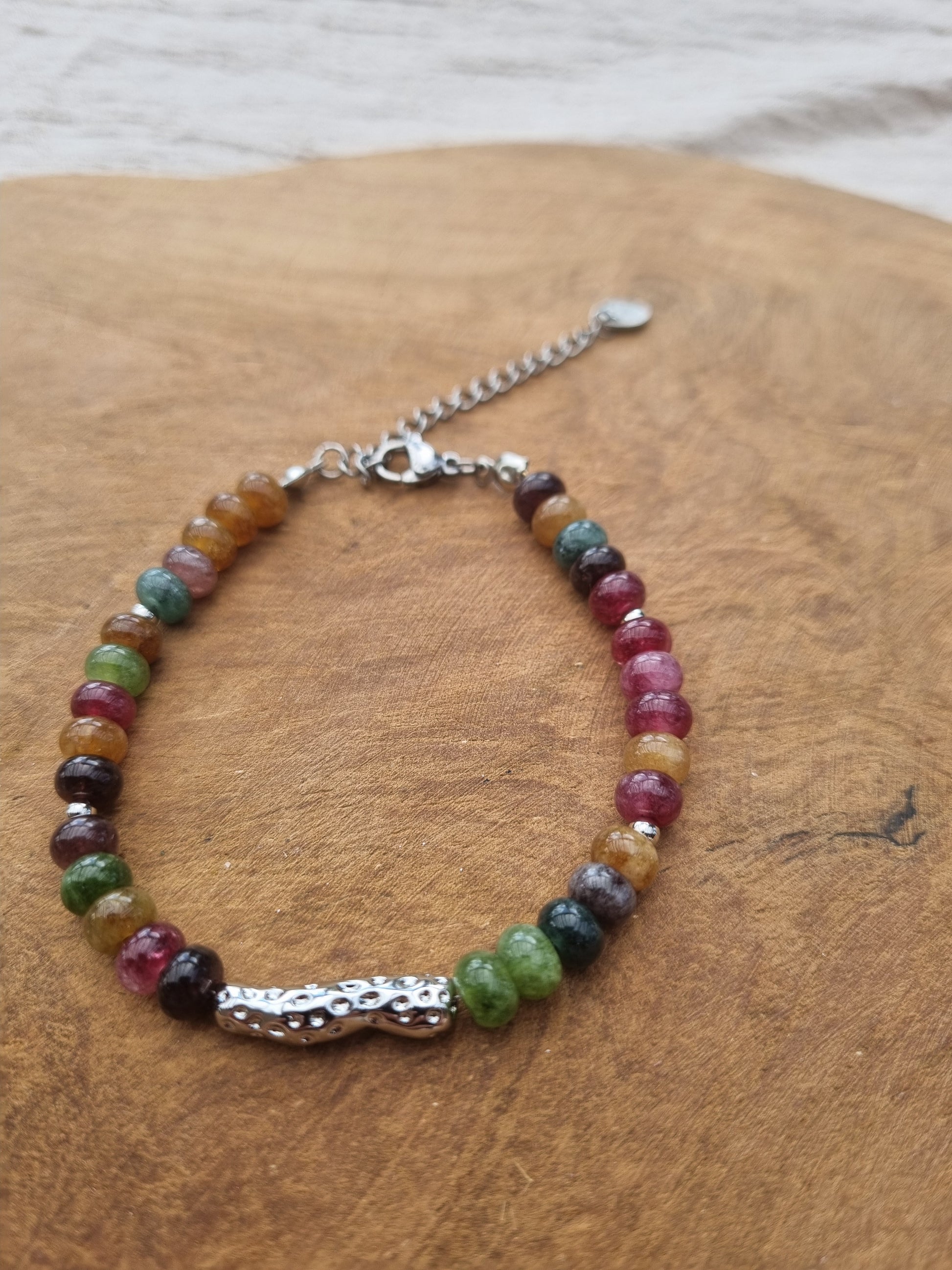 Découvrez l'éclat naturel de la tourmaline avec ce bracelet élégant, mettant en vedette une gamme de couleurs vives allant du rose tendre au vert forêt. Chaque perle est soigneusement sélectionnée pour créer un dégradé harmonieux qui enveloppera votre poignet d'une touche de couleur. Le design est complété par un fermoir élégant qui ajoute une touche de sophistication. Ce bracelet n'est pas seulement un accessoire, c'est une déclaration de style qui célèbre la beauté des pierres naturelles.