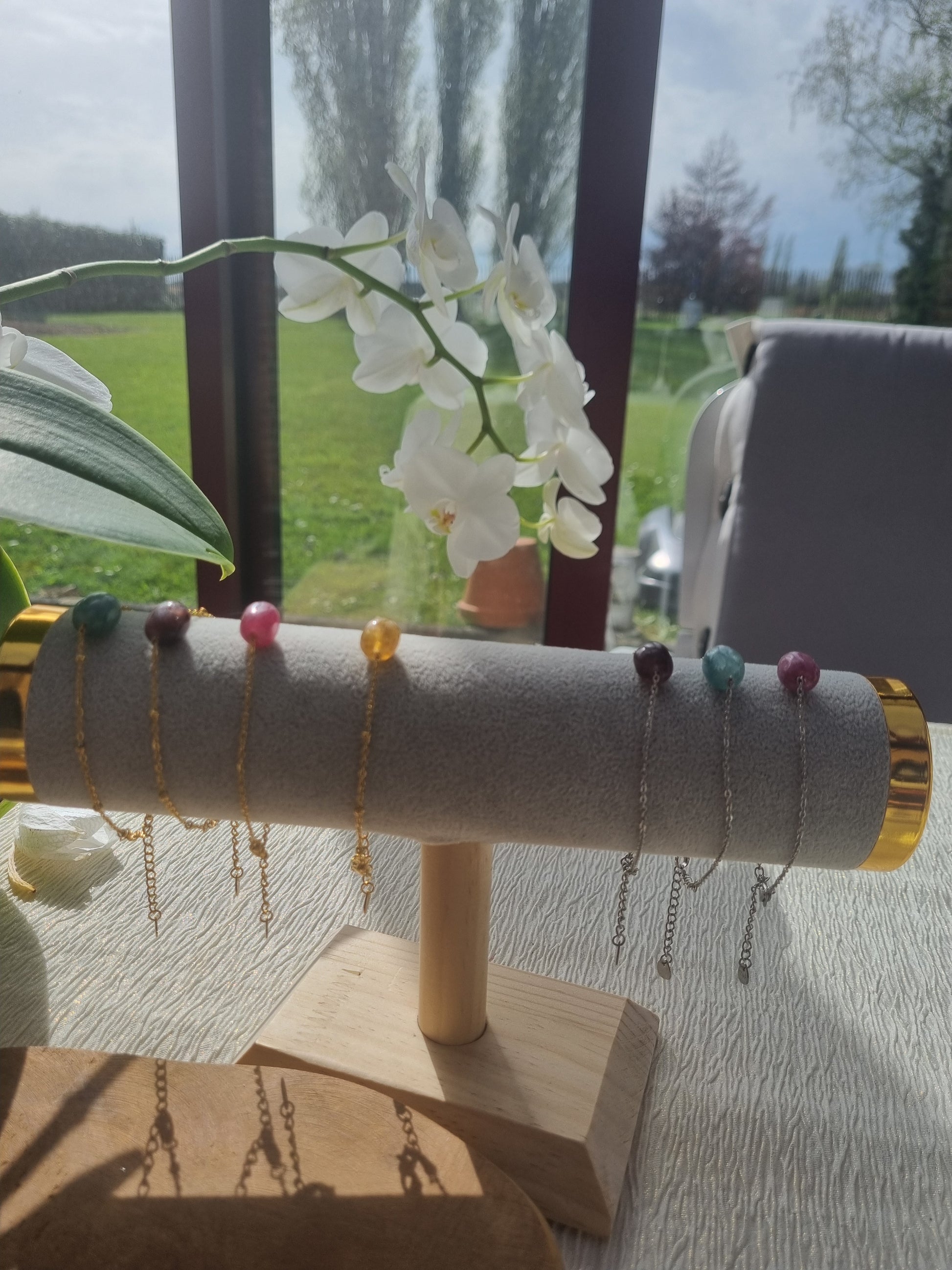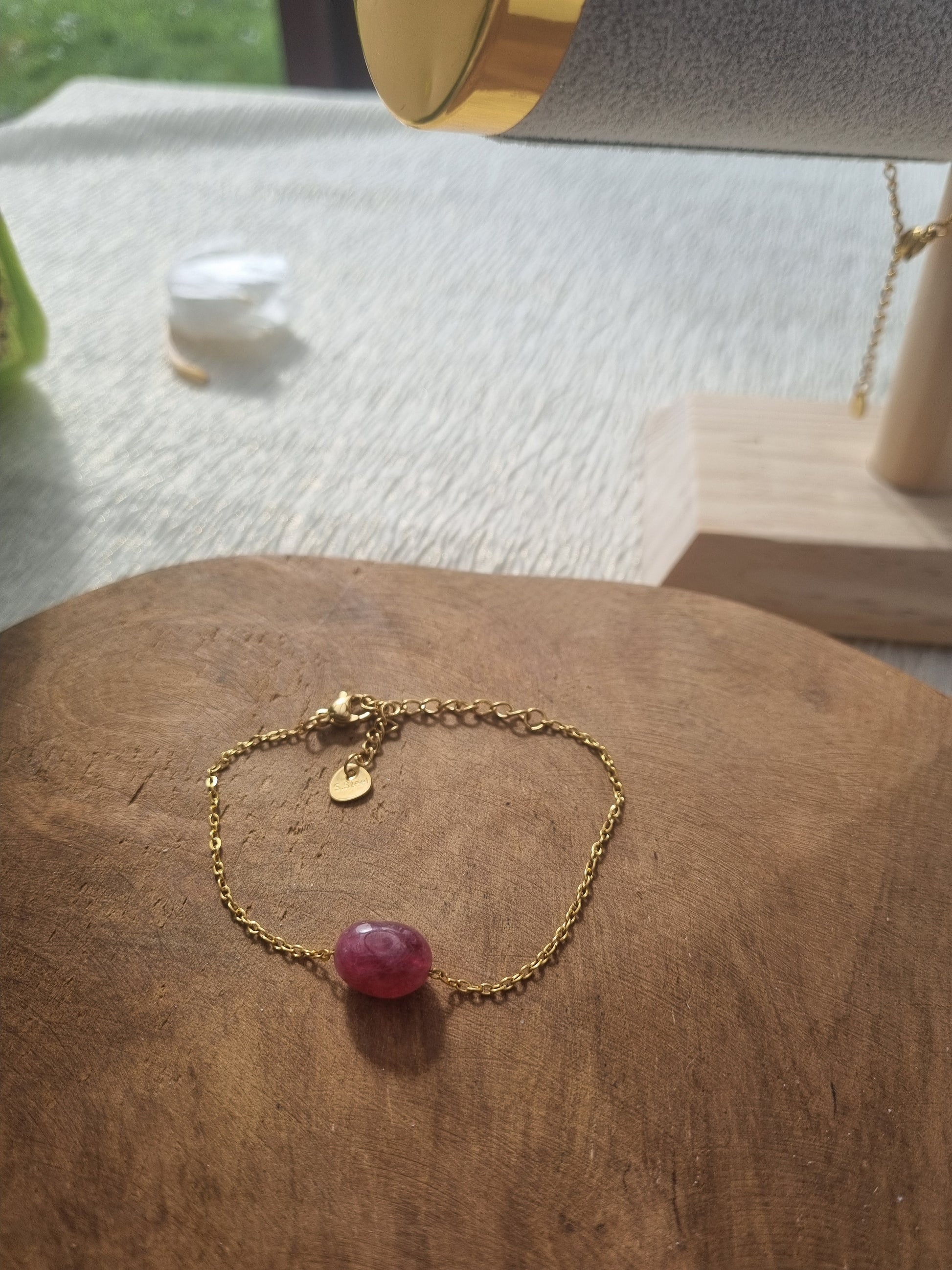 Embrassez la délicatesse et la force avec notre bracelet en acier inoxydable, orné d'une perle de rhodonite rose vibrant. Cette pièce combine une touche de couleur naturelle avec l'éclat contemporain de l'acier, offrant un équilibre parfait entre durabilité et style. Avec son charme gravé et sa fermeture sécurisée, ce bracelet est à la fois un ajout polyvalent à votre quotidien et un présent réfléchi pour quelqu'un qui apprécie la simplicité raffinée.
