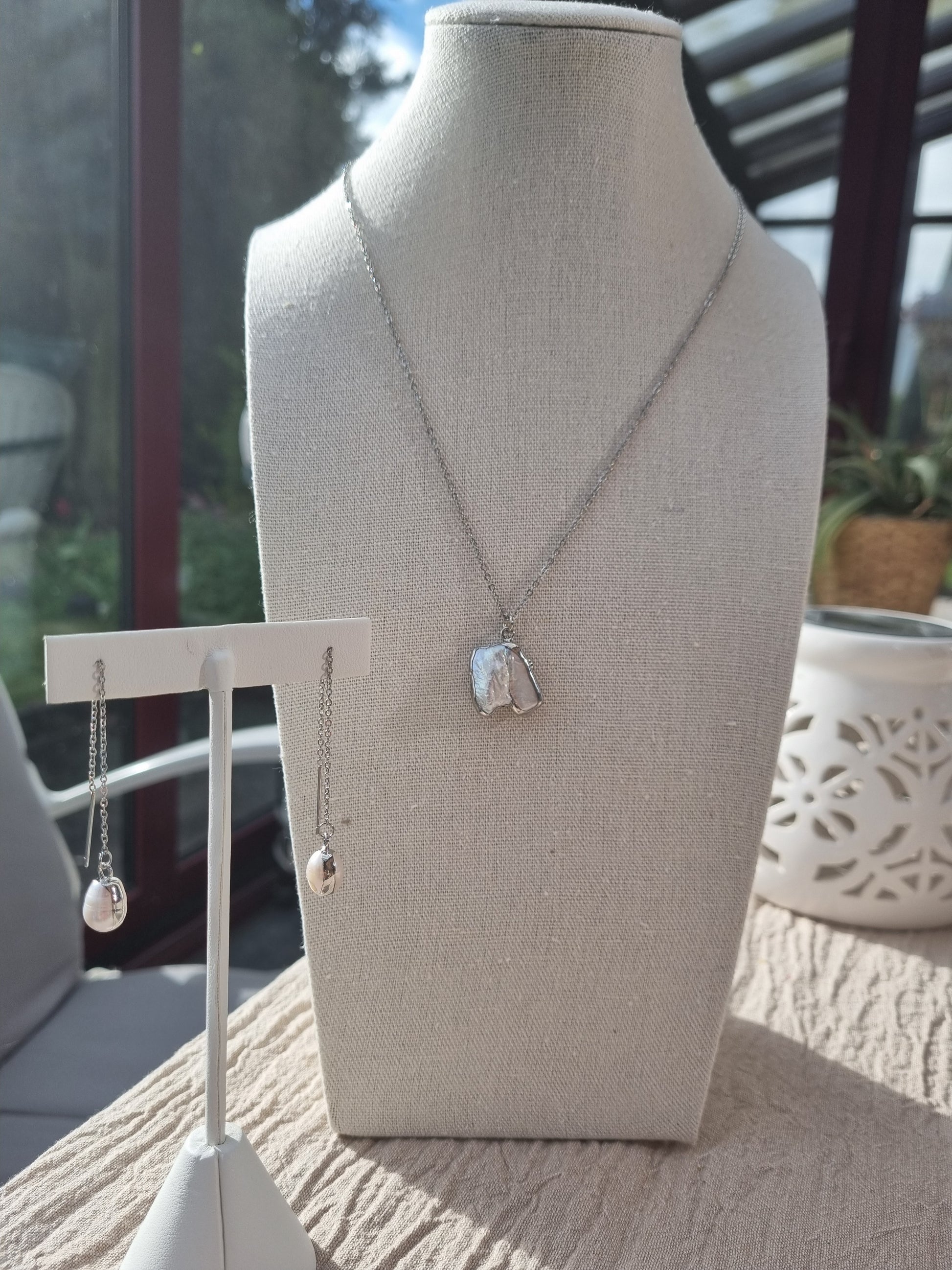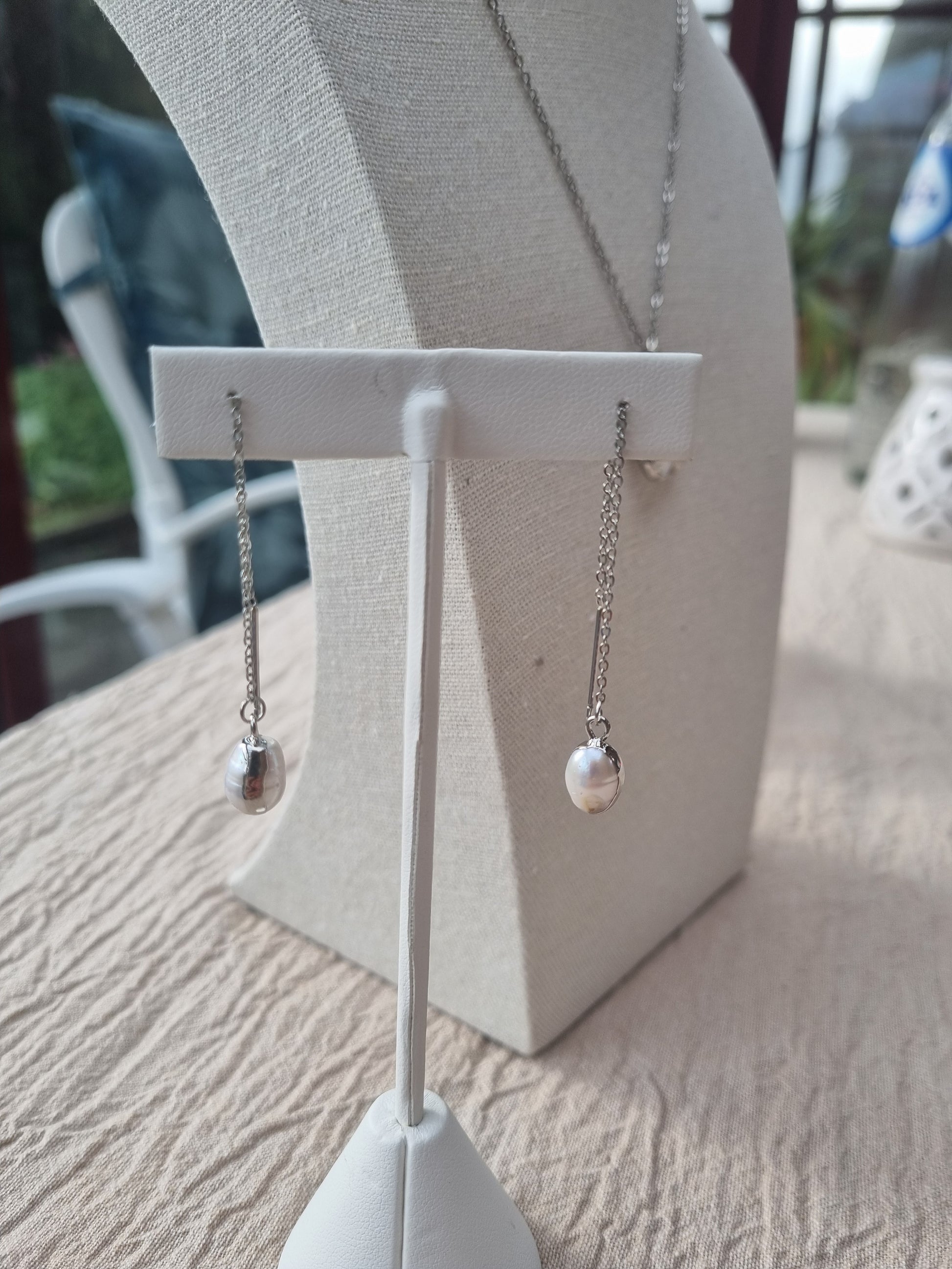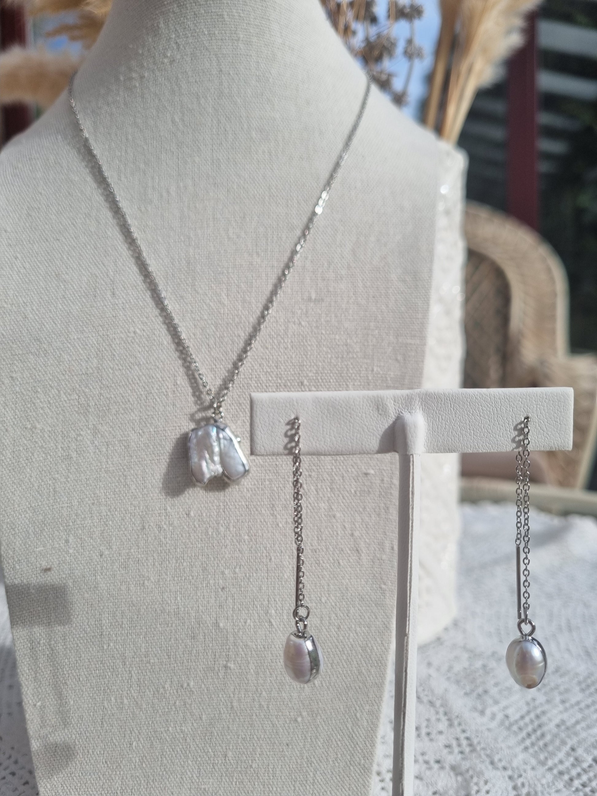 Illuminez votre visage avec la lueur douce de nos Boucles d’Oreilles Evanescence. Cet ensemble délicat présente de charmantes perles naturelles suspendues à des chaînes en argent, offrant un mouvement subtil et un éclat discret.