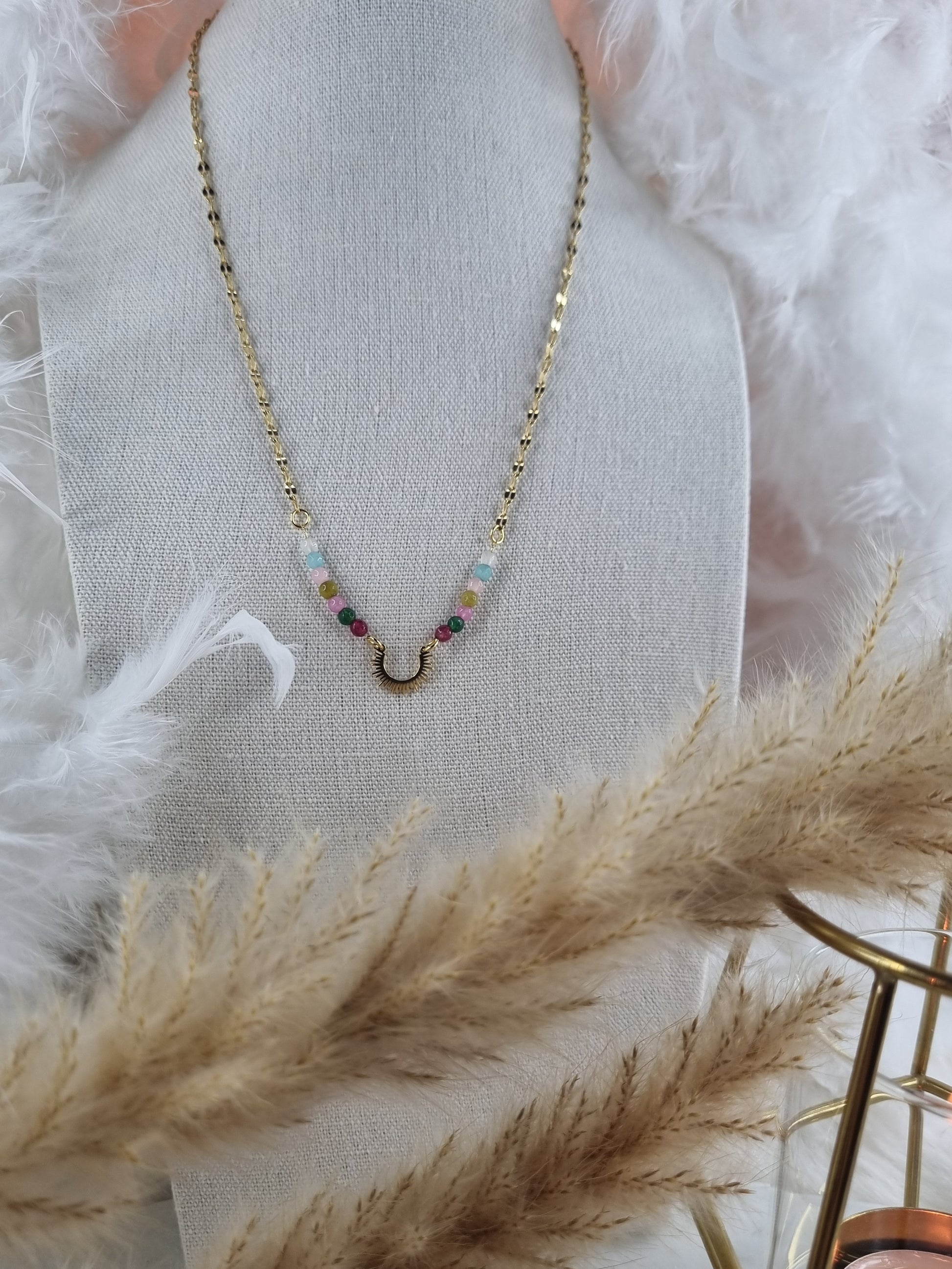 Illuminez votre garde-robe avec notre Collier Charme Éclatant, une pièce qui allie simplicité et touches de couleur vivifiantes. Ce bijou délicat mais audacieux est conçu pour apporter une étincelle de joie à votre quotidien.