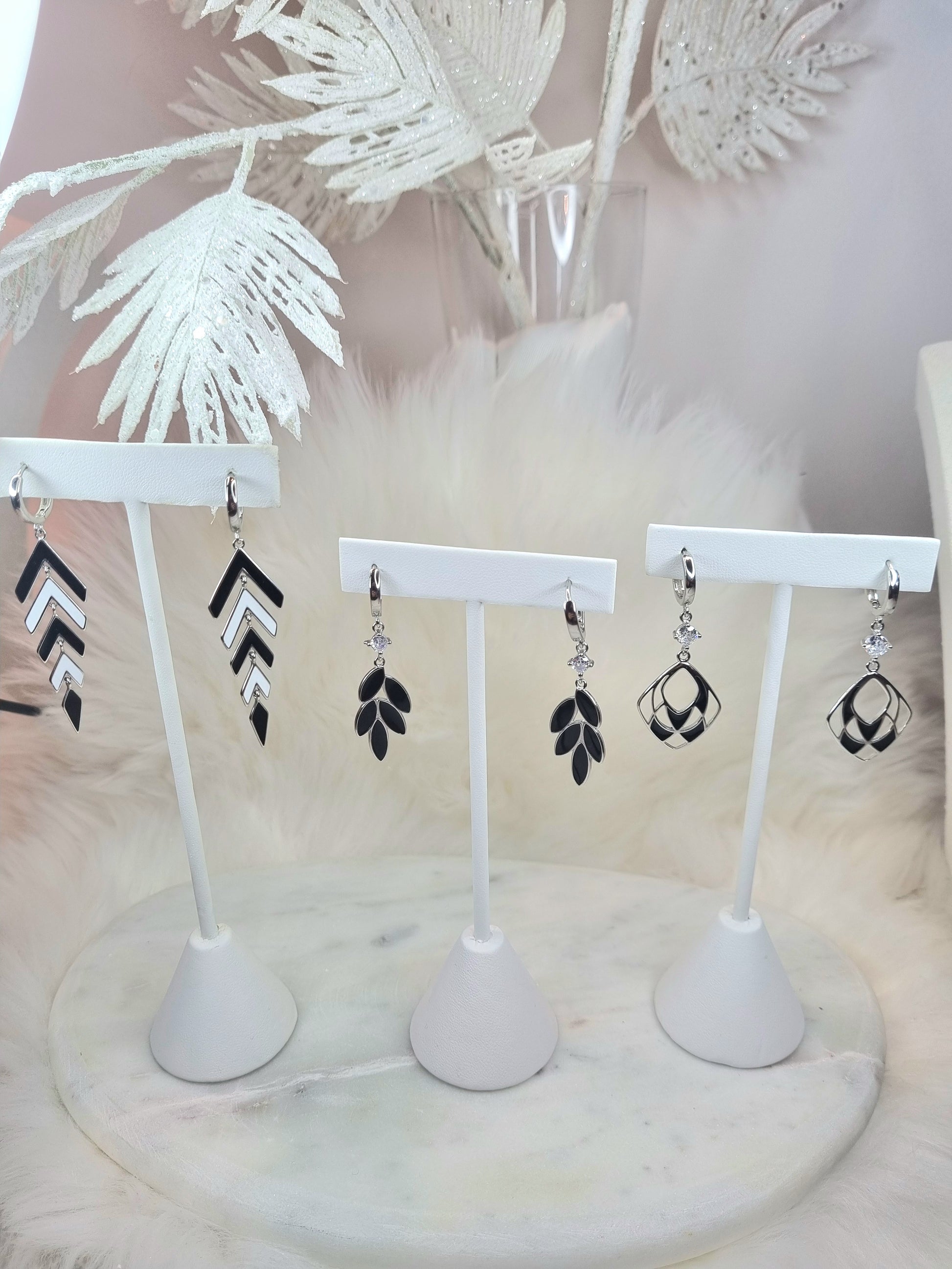 Boucles d’Oreilles Black&White - Élégance en Silver 925