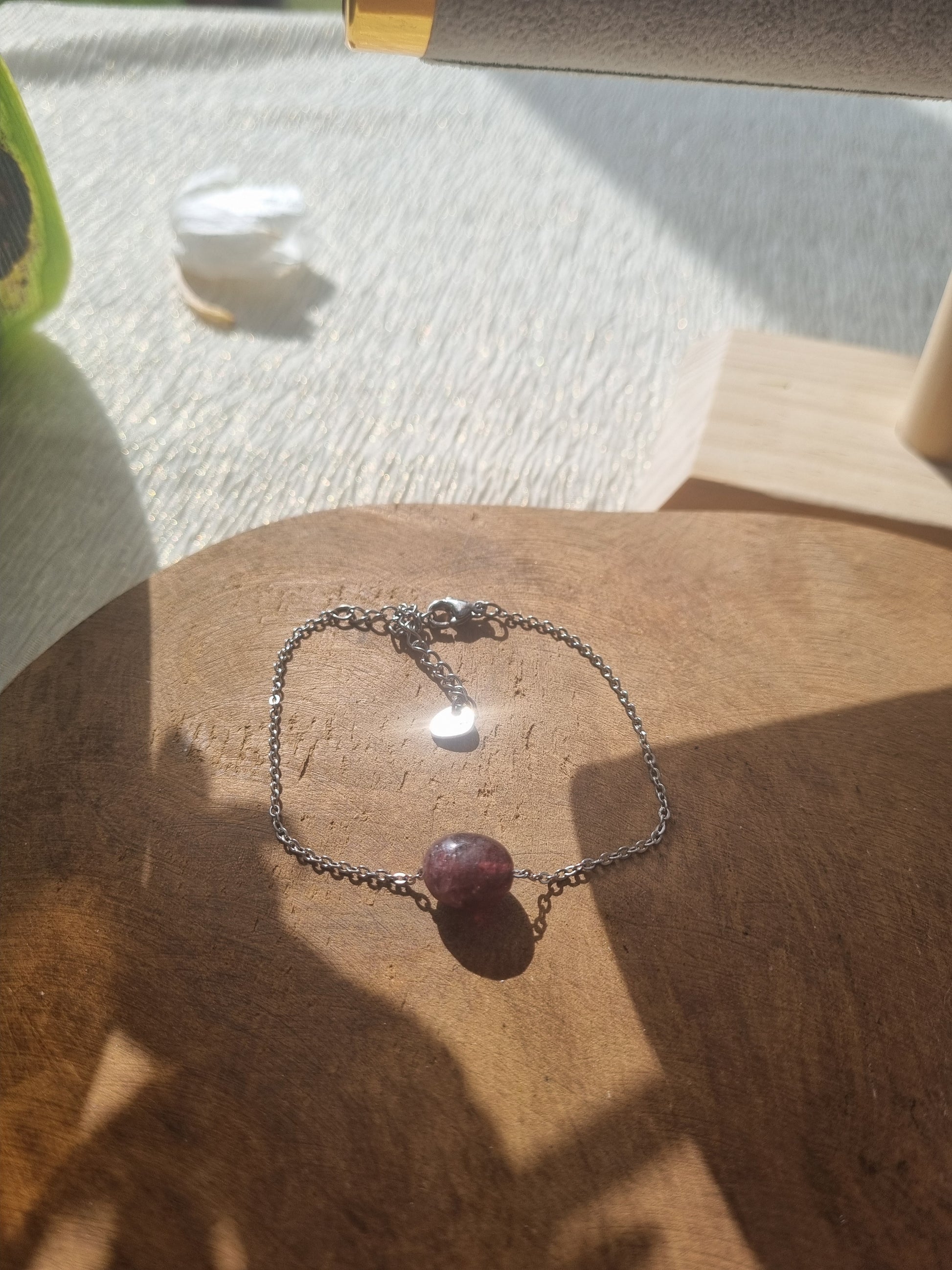 Inspiré par les teintes riches et la présence captivante du grenat, ce bracelet associe une perle de grenat somptueuse à une chaîne en acier gris pour un contraste saisissant. L'aspect robuste de l'acier se marie harmonieusement avec la pierre précieuse, symbole de passion et d'engagement, tandis que le charm en forme de goutte ajoute une touche de douceur. C'est une pièce parfaite pour ceux qui sont attirés par les bijoux qui racontent une histoire de force et d'émotion, et qui font des cadeaux mémorables.